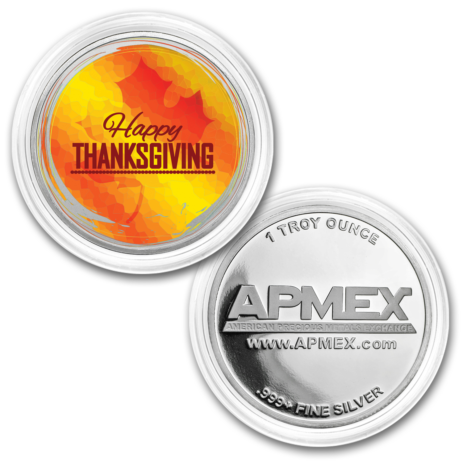 Pick up one of these unique colorized rounds while supplies last. Add this beautiful full-color 1 oz Thanksgiving round to your cart today!