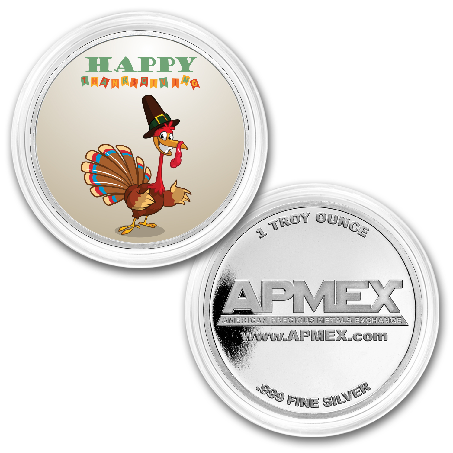 Pick up one of these unique colorized rounds while supplies last. Add this beautiful full-color 1 oz Thanksgiving round to your cart today!