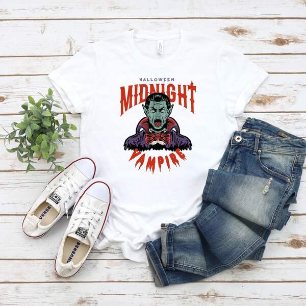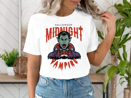 Unleash your inner vampire with our captivating 'Halloween Midnight Vampire T-Shirt'! This whimsical tee embodies Halloween magic, transporting you to a world of mystery and fascination.