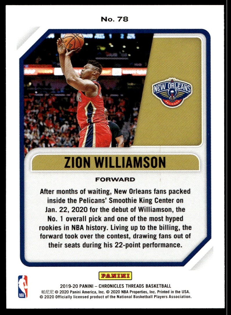 2019-20 Panini Threads 78 Zion Williamson