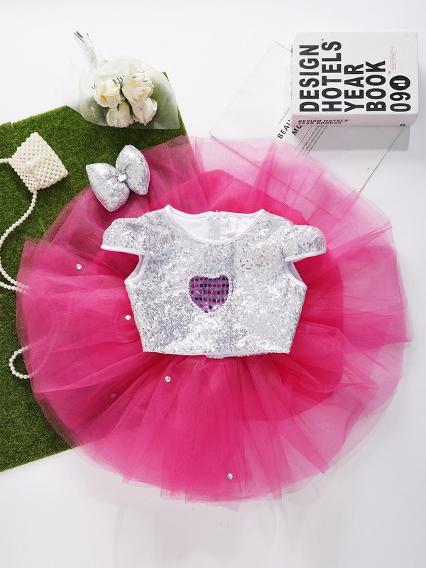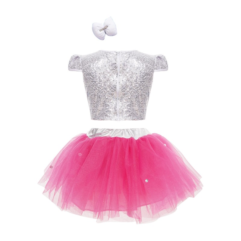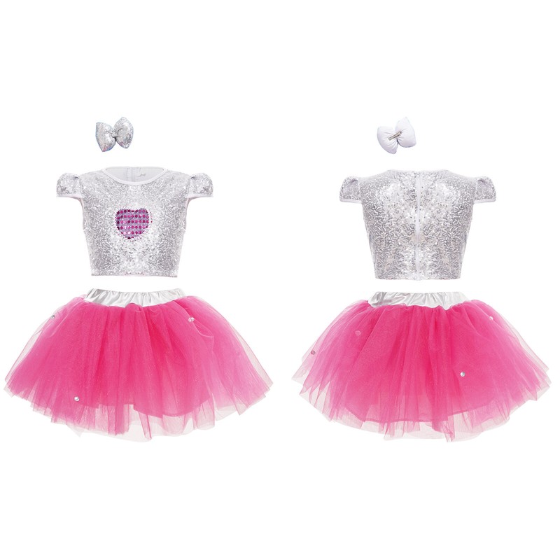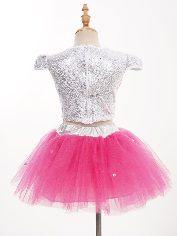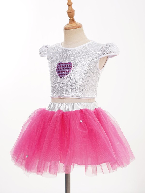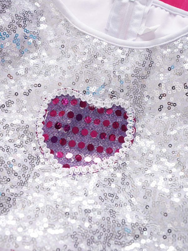 The cap sleeve crop top is adorned with sequins that sparkle in the light, making your girl stand out in the crowd.