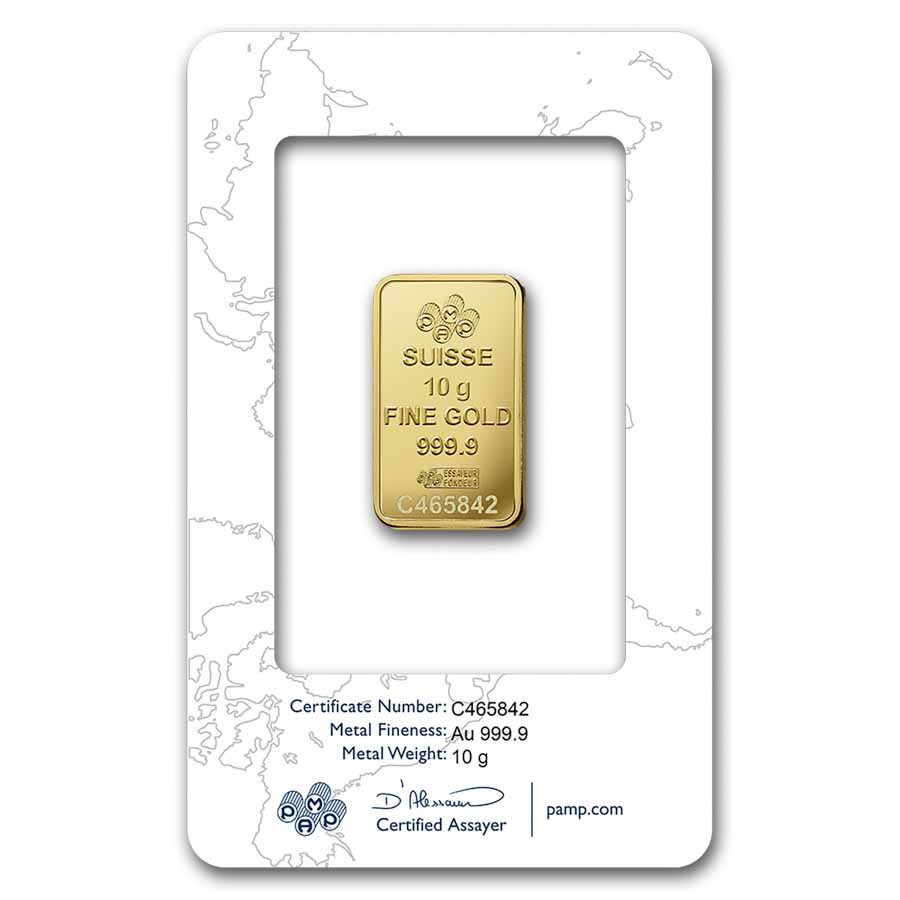 Gold bars are a convenient and popular way to invest in precious metals. Add this 10 gram Gold PAMP Rosa bar to your cart today!
