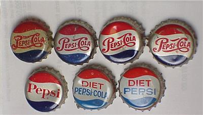 - Specifics about this item - A GROUP of 7 advertising soda bottle caps / crowns from Pepsi / Diet Pepsi. First pepsi is double dot.
