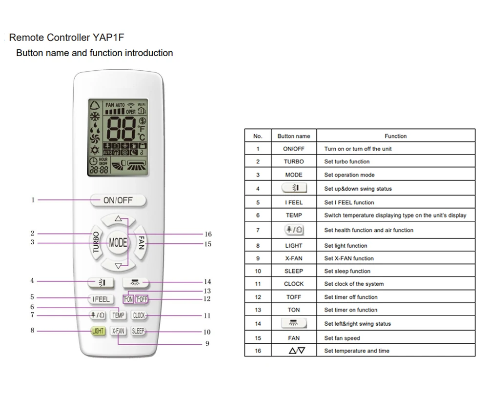 New Replacement YAP1F For GREE AC A/C Air Conditioner Remote Control YB1F2 YB1FA