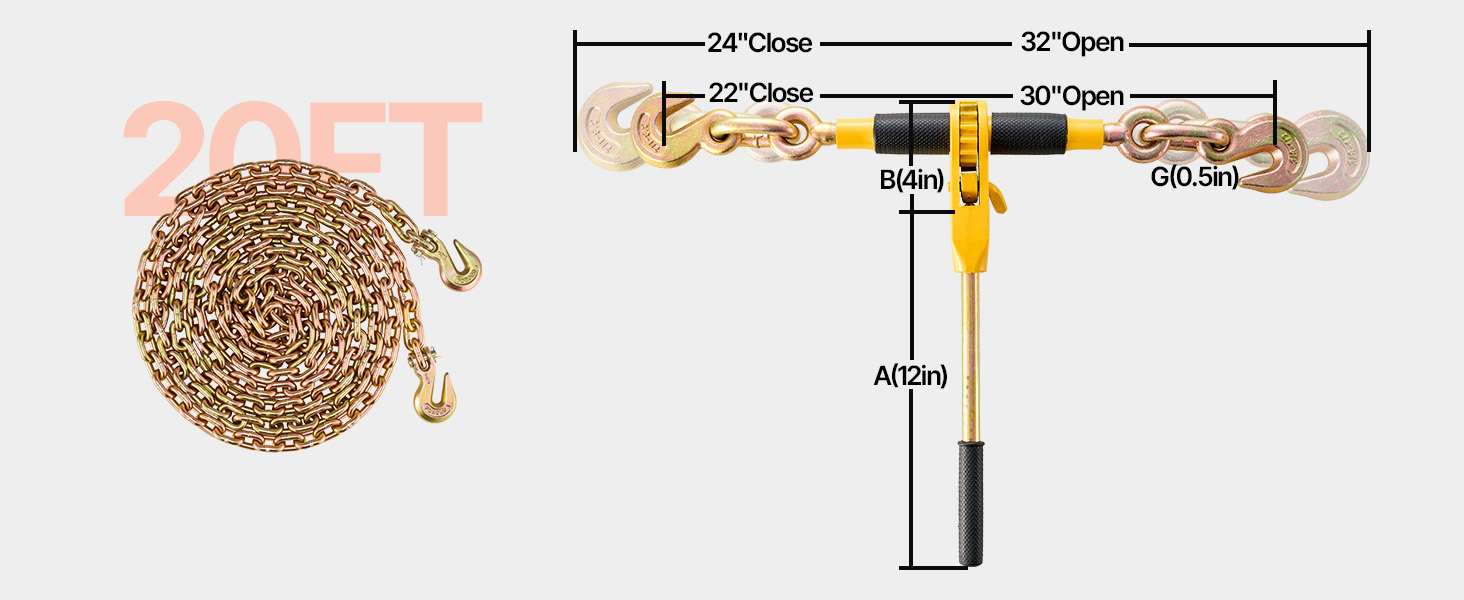 This VEVOR tensioner is more labor-saving than ordinary ones. You can take the handle off and put it into the toolbox or the narrow storage space in cars. Ideal for bundled transportation of various heavy goods, equipment, and vehicles. Get your products where they need to be with VEVOR!