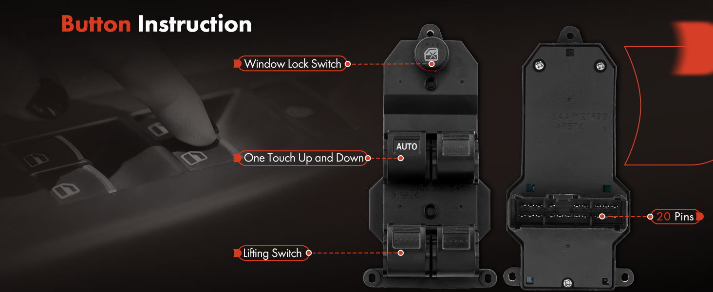 A-Premium Power Window Switch 5 Button Front Left for Honda Civic 2001-2005 CR-V