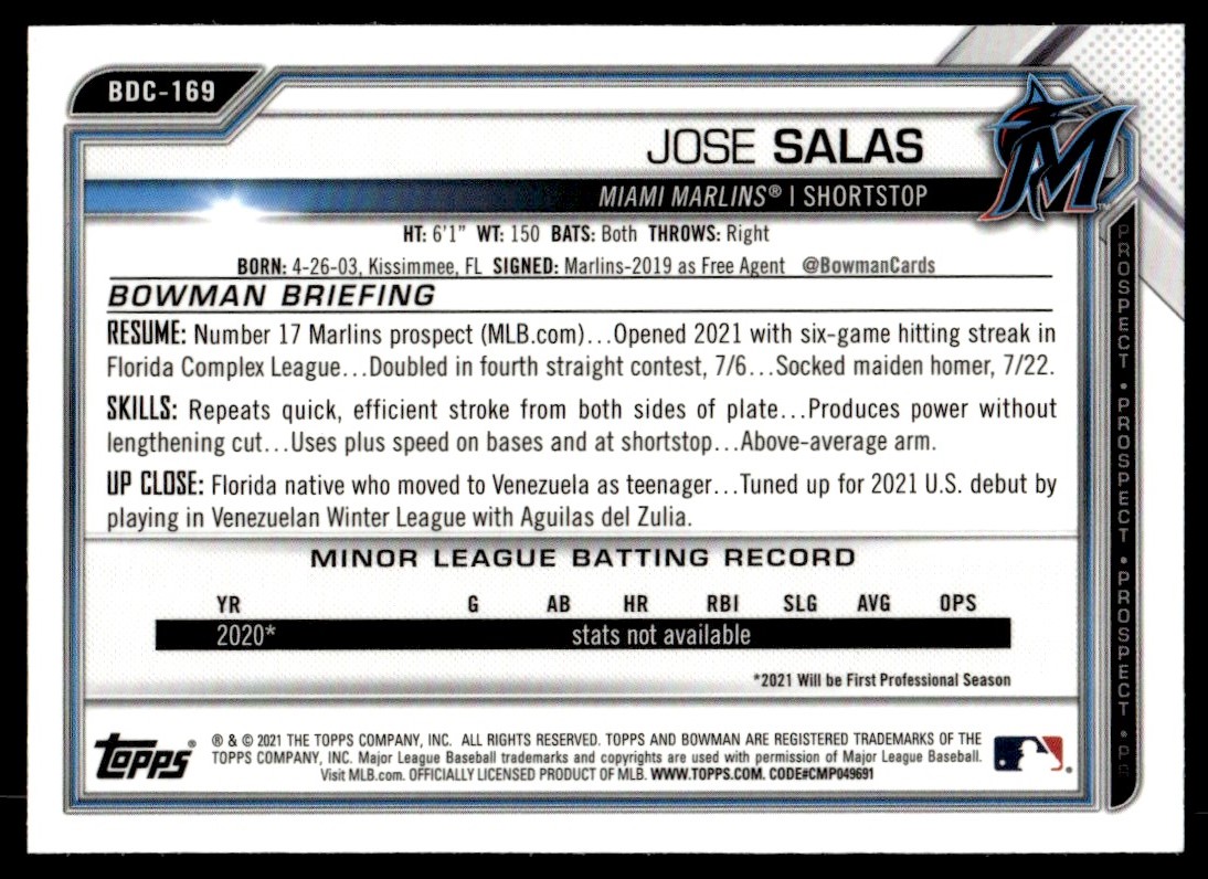 2021 Bowman Chrome Sapphire BDC-169 Jose Salas