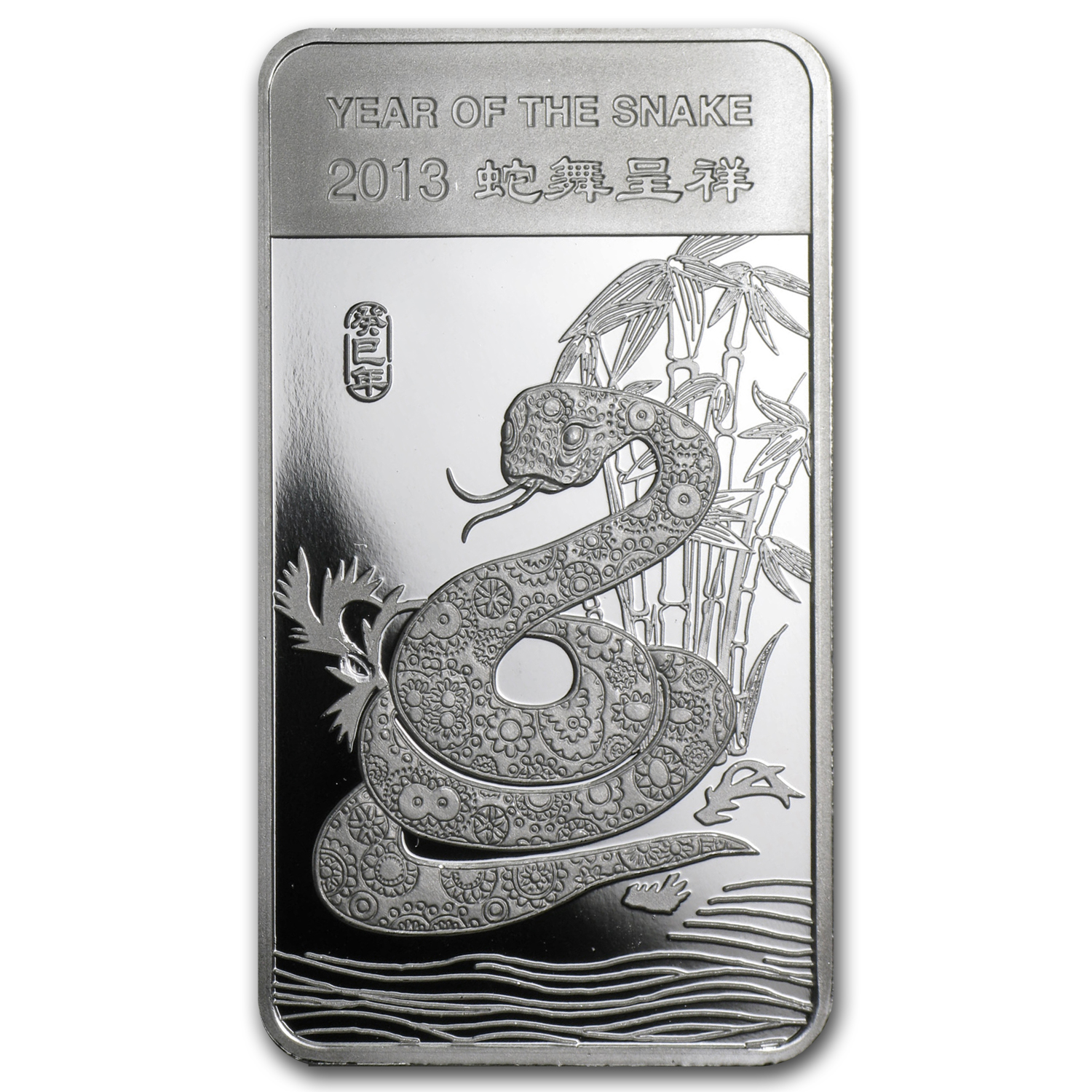 Year of the Snake APMEX Silver Bars celebrate everyone who was born in the years 1905, 1917, 1929, 1941, 1953, 1965, 1977, 1989, 2001 and 2013. Add these 1/2 oz Silver APMEX Year of the Snake Bars to your cart today.