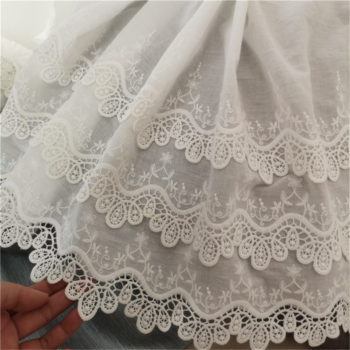 1 Yard Cotton Floral Embroidery Lace Trim Dress Curtain Fabric Ribbon Sewing