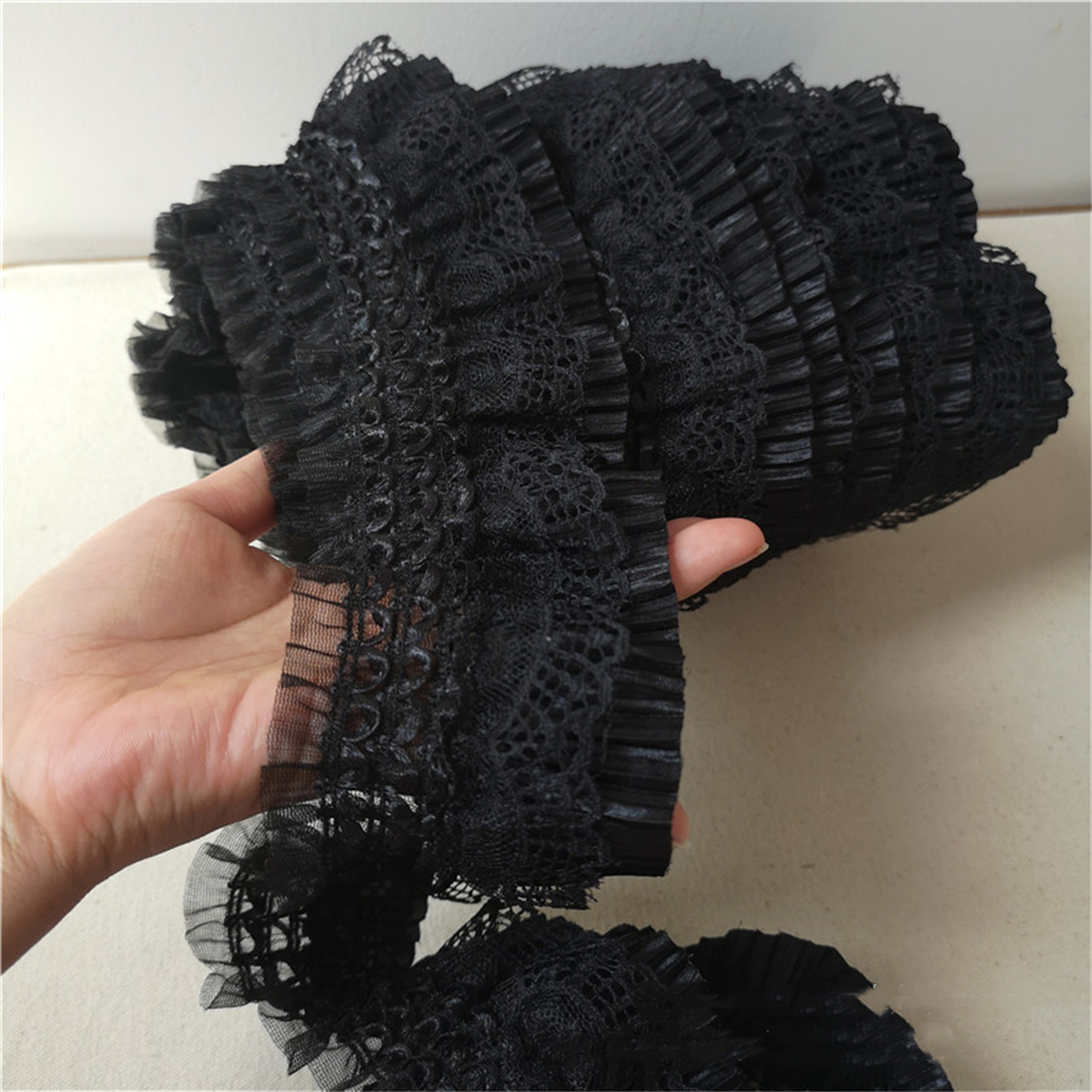 5 Yards Lace Chiffon Pleated Ruffle Trim Embroidery Ribbon Wedding Dress Sewing