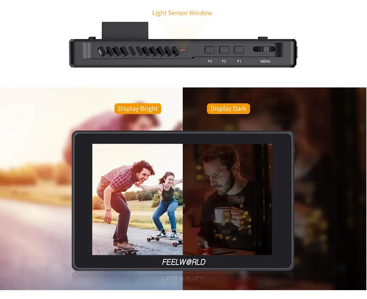 Built-in an ambient light sensor, from a dim studio to a sunny location, from midnight moonlight to noon sunshine, it can automatically adjust the monitor brightness to fit your filming environment.