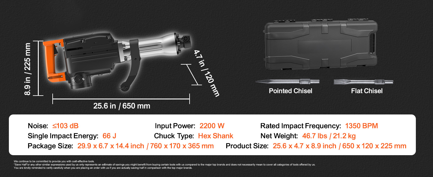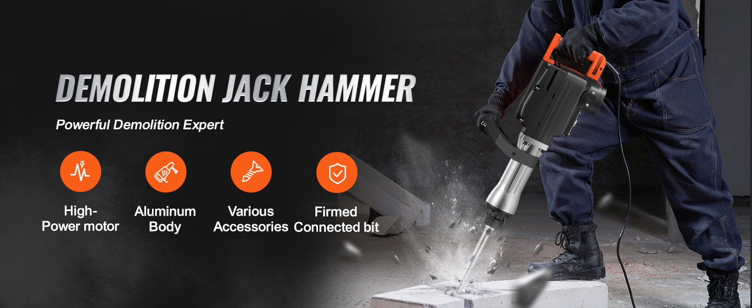 SKYSHALO's 110V power demolition drills & hammers are versatile tools. They come with 2 chisel bits (flat chisel and point chisel) and are perfect for demolition, trenching, chipping, and breaking holes in concrete, block, brick, and tile. Additionally, they are ideal for various applications such as pipeline and mechanical installation, drainage facilities construction, housing foundation removal, concrete slab, oil chimney, interior decoration, and more!