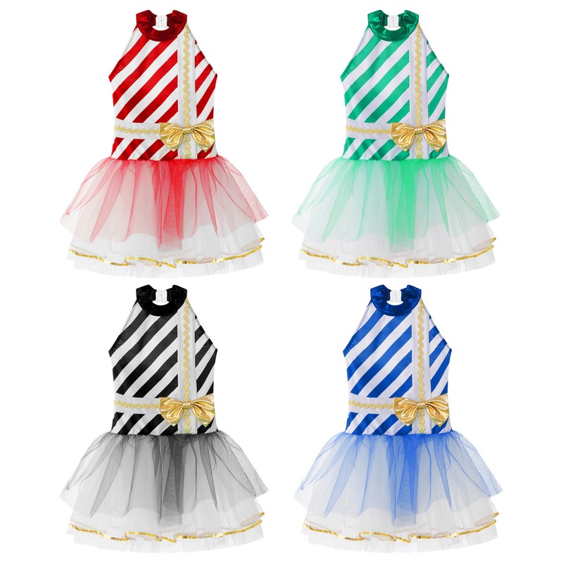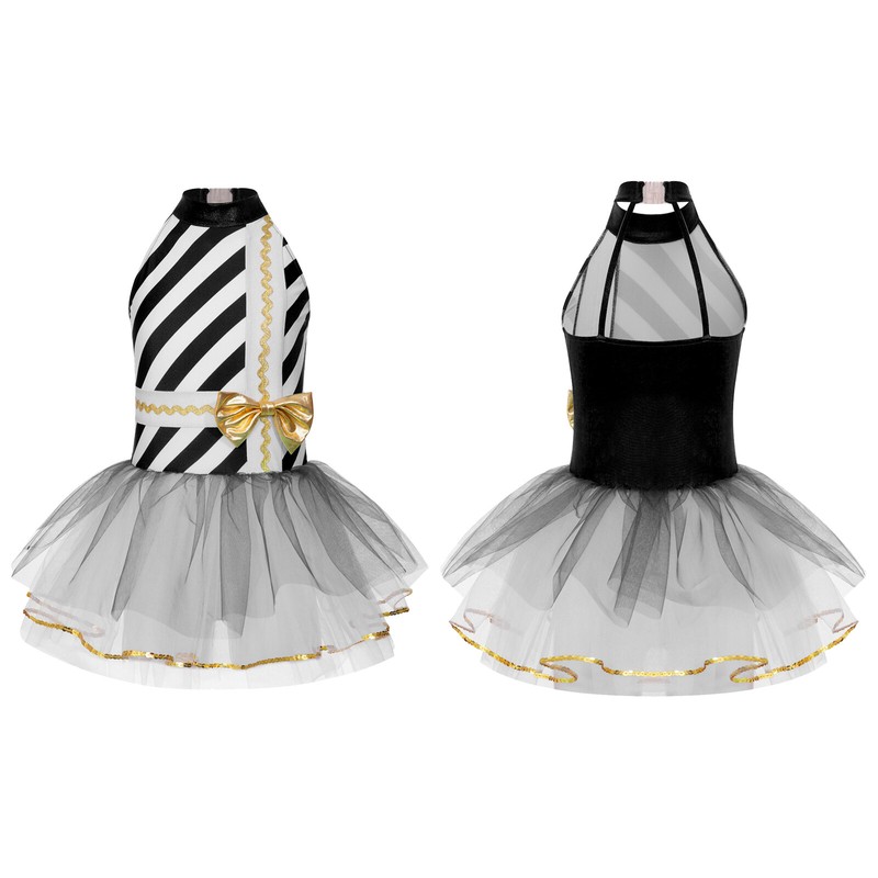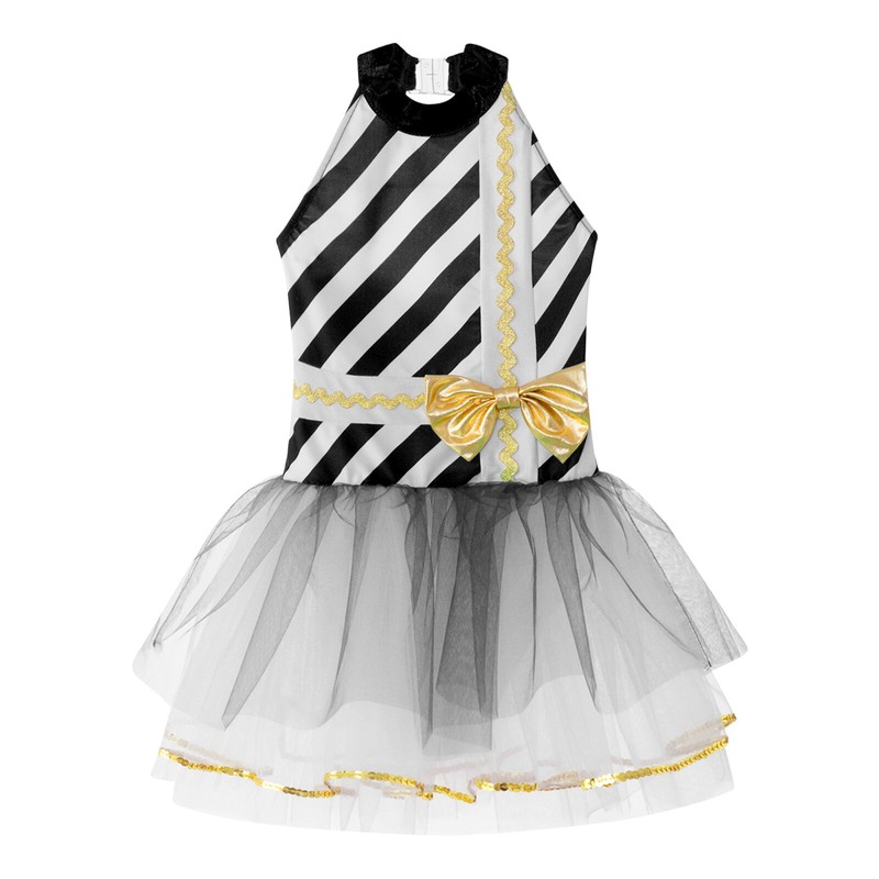 Slant stripes print, gold lace and bowknot make girls look stylish and attractive.