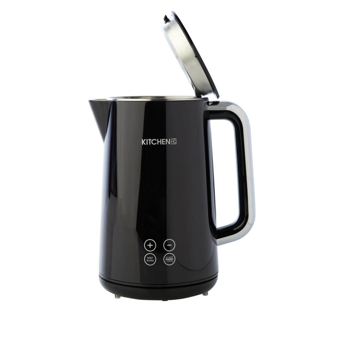 Kitchen HQ brings you an electric kettle with all the bells and whistles and then some. Not only does it boast a powerful 1500 watts of power, which will bring your water to a boil in a flash, it also has presets—so if you're a tea aficionado you can get just the right temperature for your special brew. The large touch-button screen display is easy to read and the double wall housing means the kettle's exterior stays cool to the touch, while the food grade stainless interior is hygienic and easy to clean.