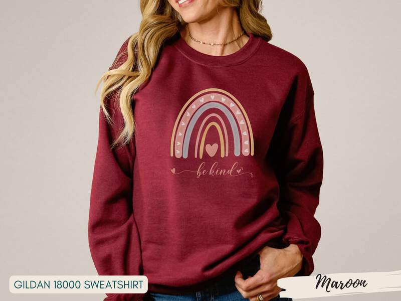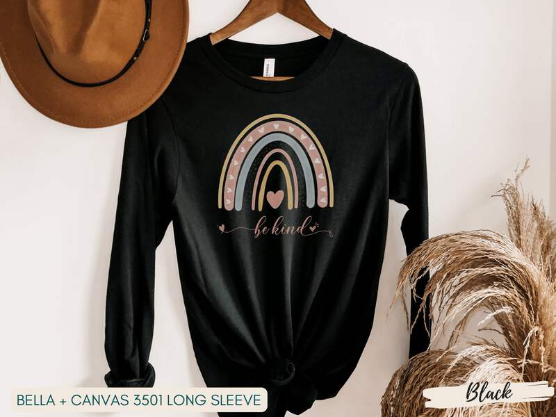 Introducing our 'Be Kind' shirt, available in three stylish options: short sleeve, long sleeve, and sweatshirt. This shirt is a wonderful addition to your wardrobe, perfect for teachers aiming to inspire kindness and positivity in their students. The heart-embedded font delivers a powerful message, while the boho rainbow design adds a charming touch.