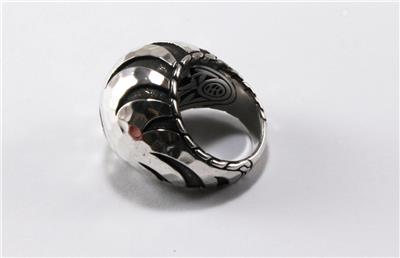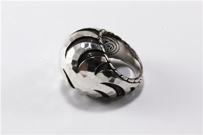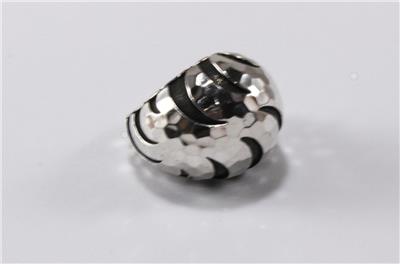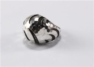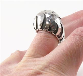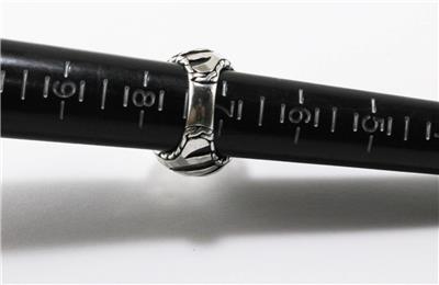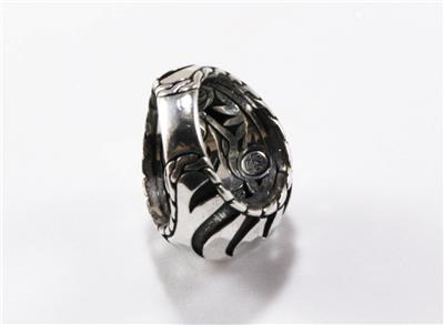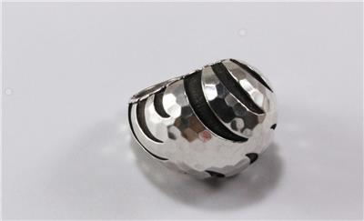 Authentic John Hardy PALU MACAN COLLECTION 925 sterling silver tiger stripe domed ring. The ring top measures approximately 0.83 inch (21.20mm) at the top and tapers down to 0.23 inch (5.87mm) at the bottom. Item weight is approximately 18.22 grams. It is excellent condition with some light signs of wear, see all photos for details, all photos are from actual item. Comes in a generic box as shown.