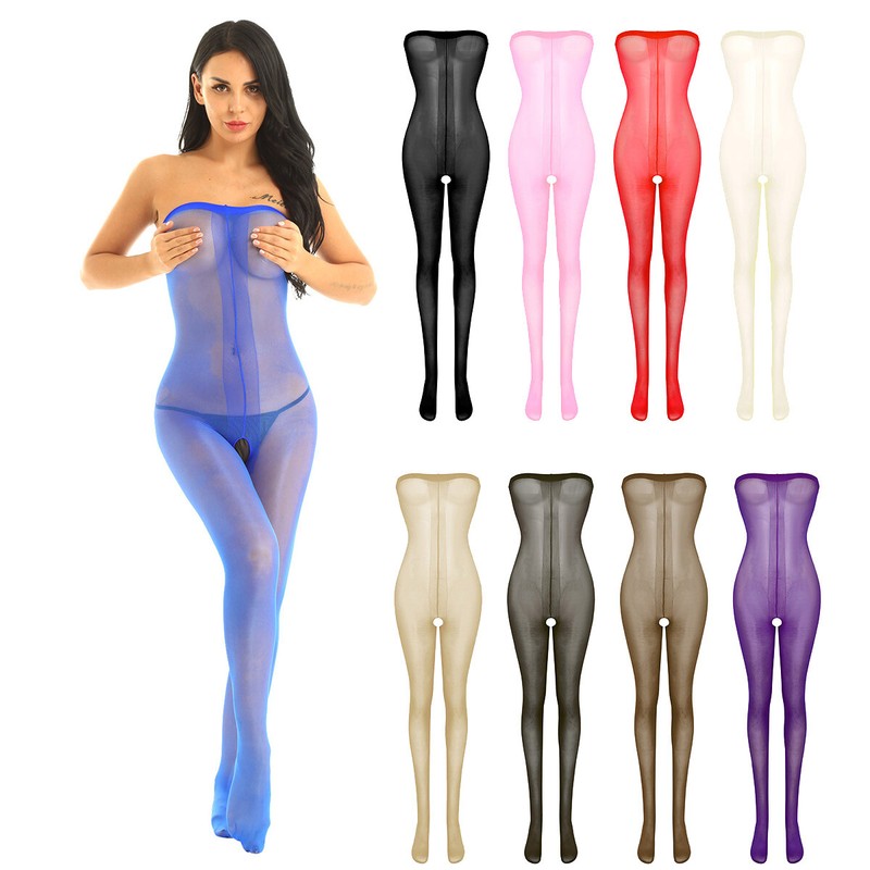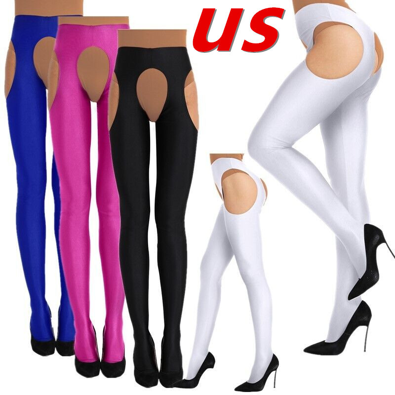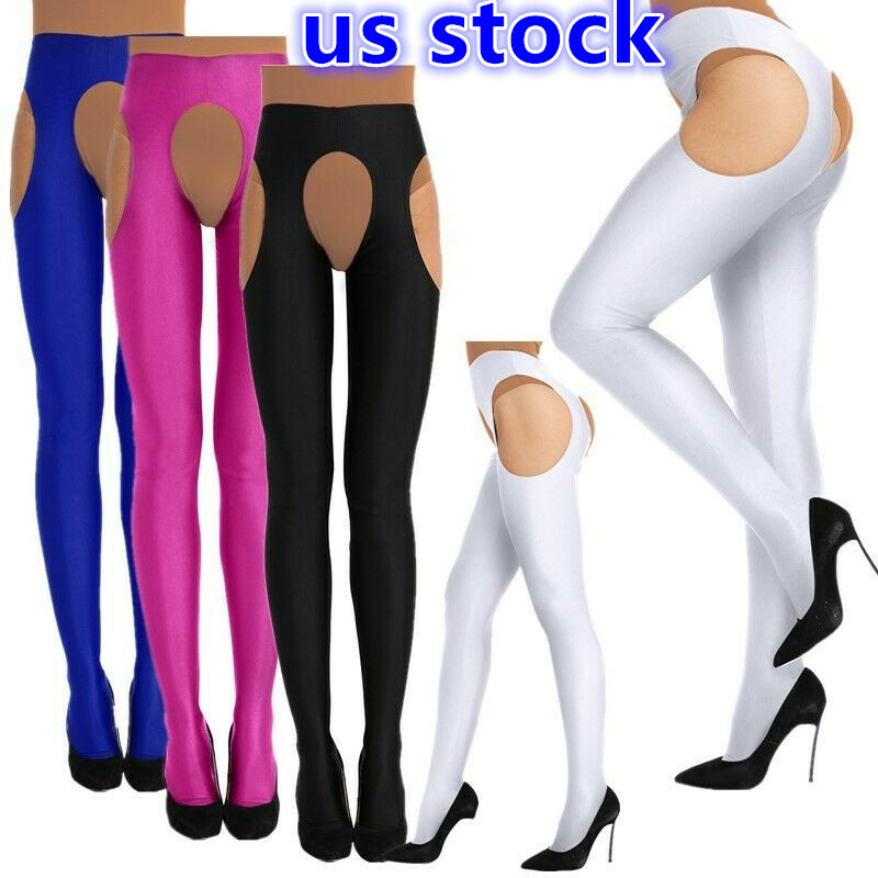 Womens Glossy Semi See-through Tights High Waist Patchwork Crotchless Pantyhose Stockings.