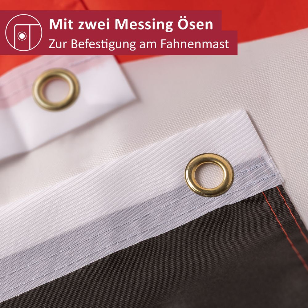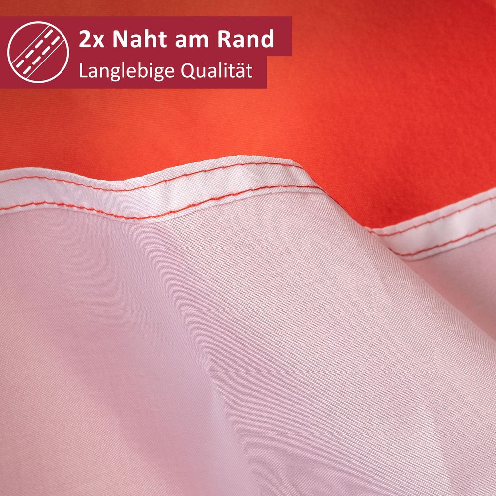 UNSERE QUALITÄT: ✓ wetterfest ✓ doppelt umsäumter Fahnenrand ✓ robuste Ösen aus Messing ✓ intensive Farben