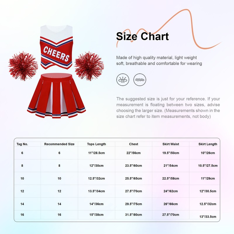 | Tag No. | Recommended Size | Tops Length | Chest | Skirt Waist | Skirt Length |