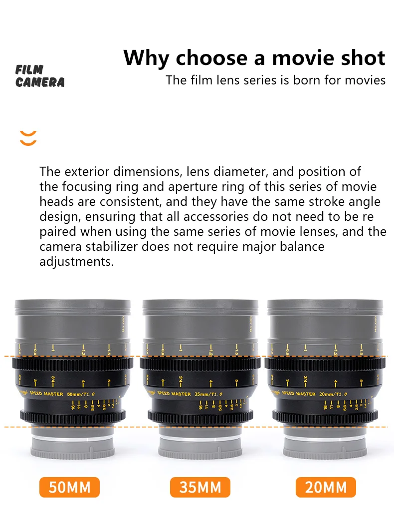 Zhongyi Mitakon 20mm 35mm 50mm T1.0 APS-C Cinema Lens for Canon Nikon Sony Fuji