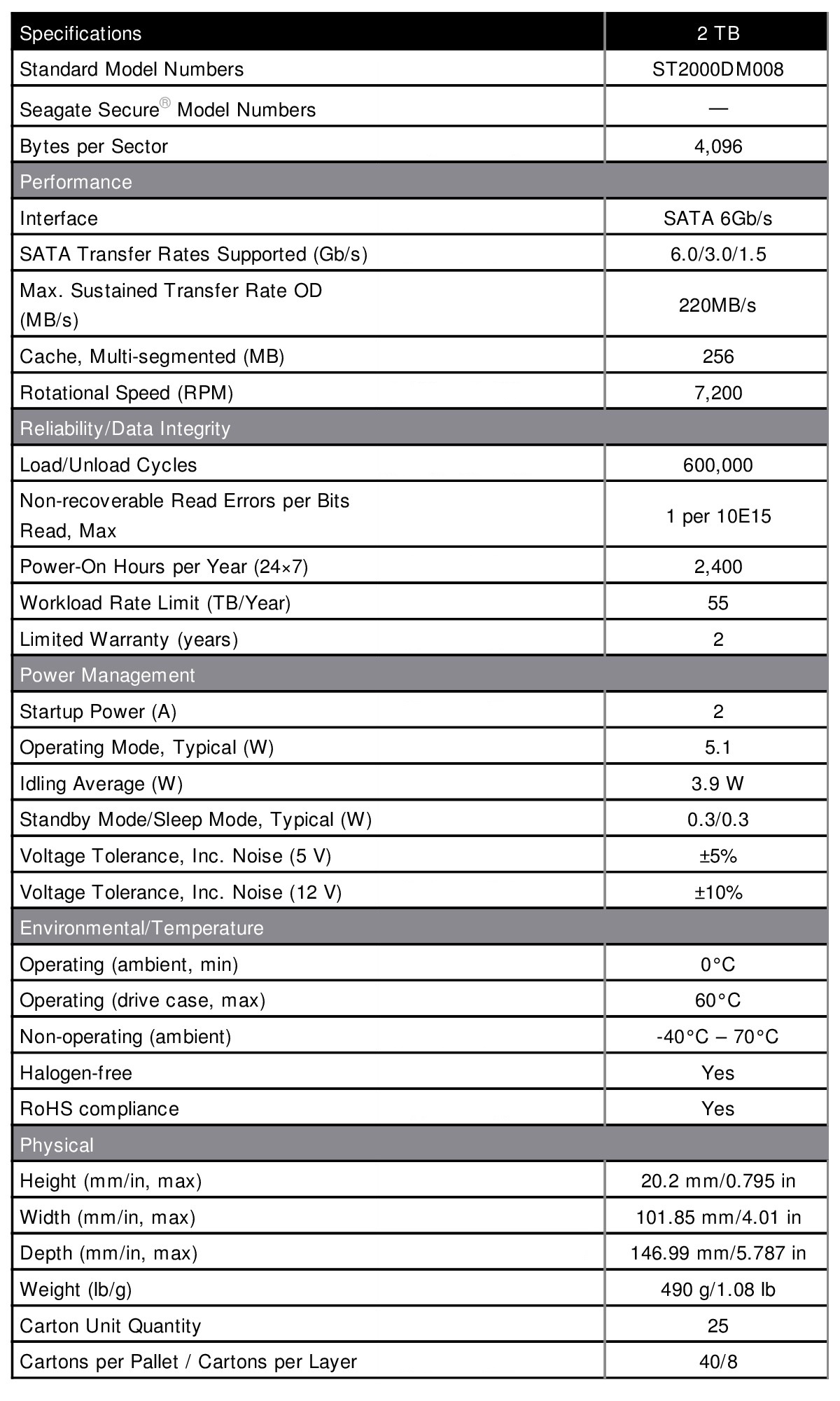 Seagate ST2000DM008 2TB BarraCuda 3.5" 7200RPM SATA3 Desktop Hard Drive