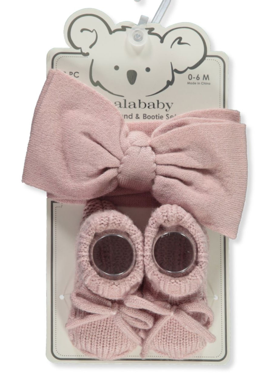 Koala Baby Baby Girls' 2-Piece Headband Booties Set - mauve, one size
