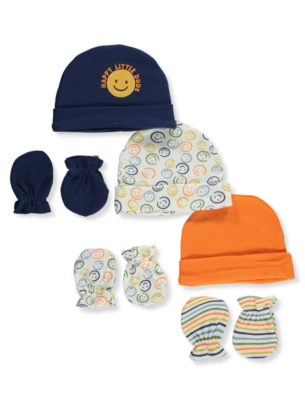 Duck Duck Goose Baby Boys' 6-Piece Caps & Booties Set - orange/multi, one size