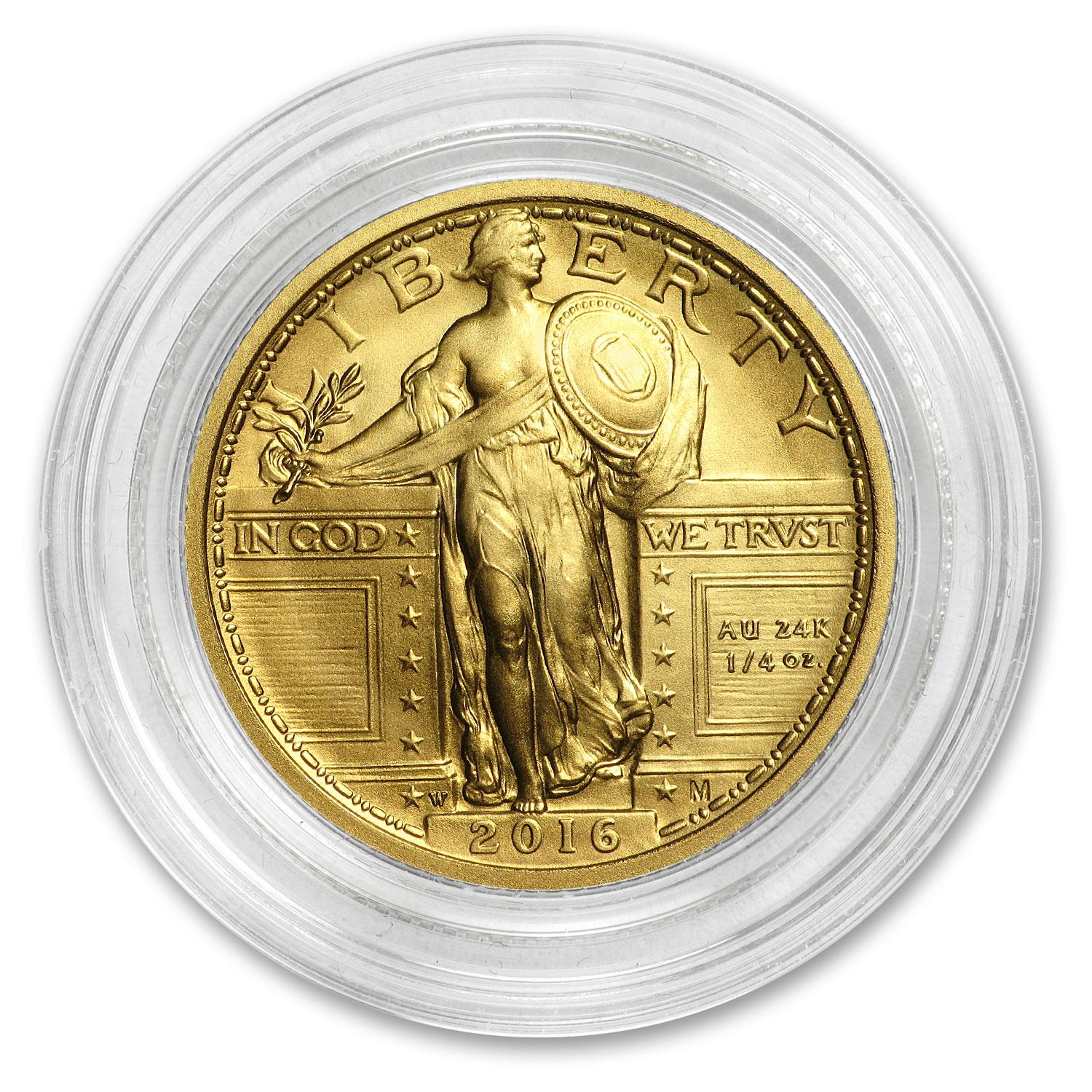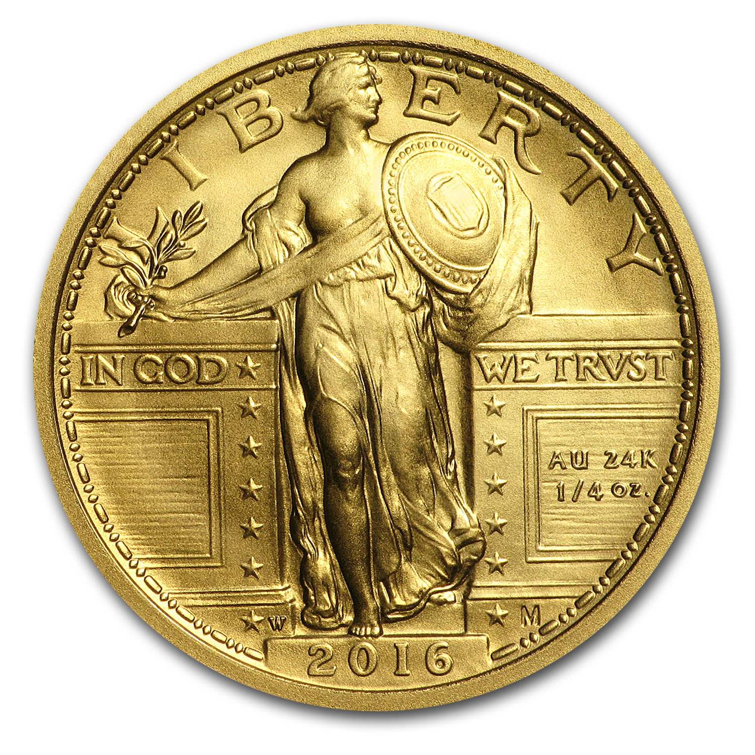 th anniversary coin was issued in memory of the popular 1916 Standing Liberty Quarter and features 1/4 oz of .9999 fine Gold making this coin a great addition to both numismatic & investment portfolios. Add this 1/4 oz Standing Liberty Quarter to your cart today!