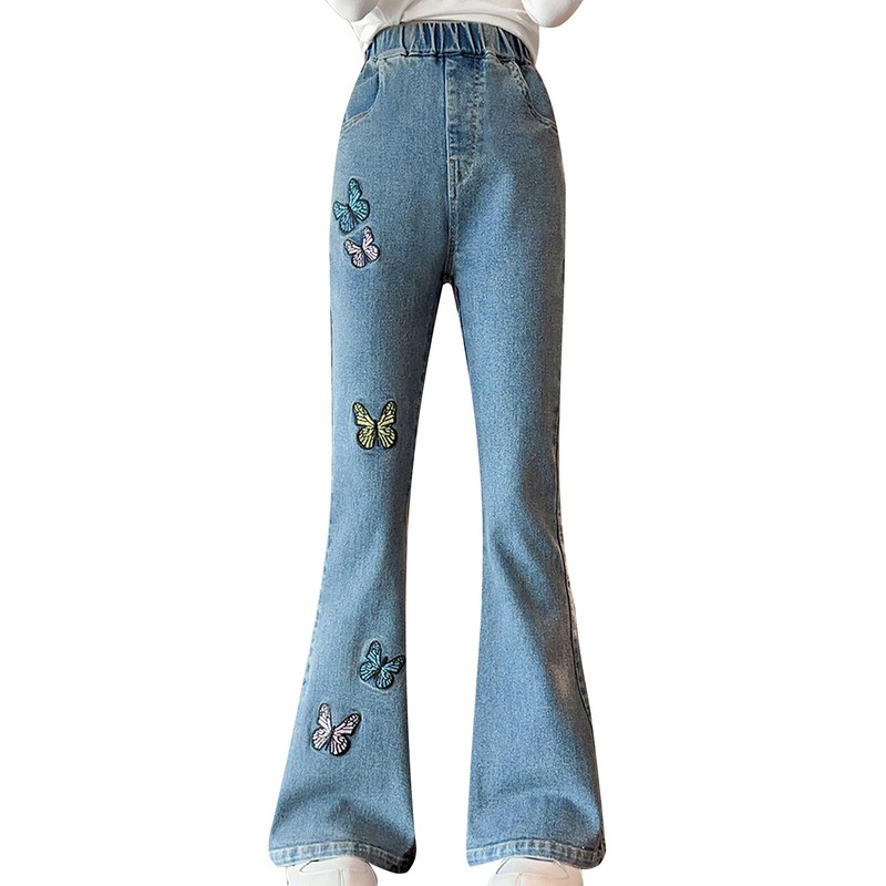 High waist jeans for girl with butterfly embroidered design, makes your child more cute and stylish.