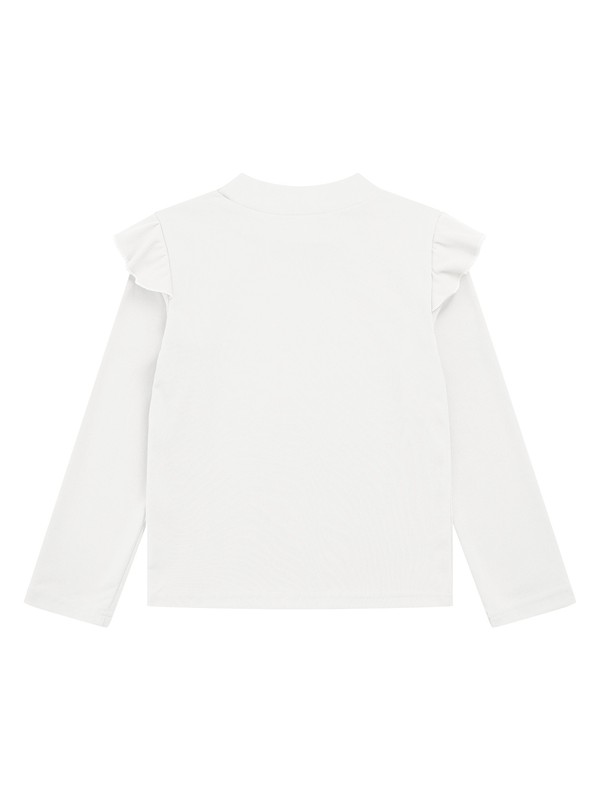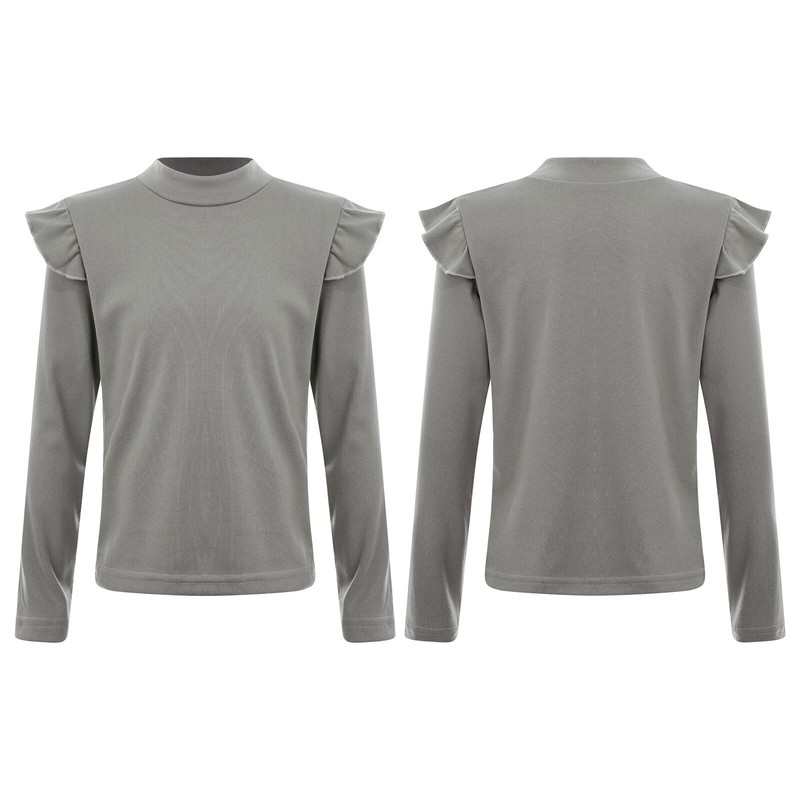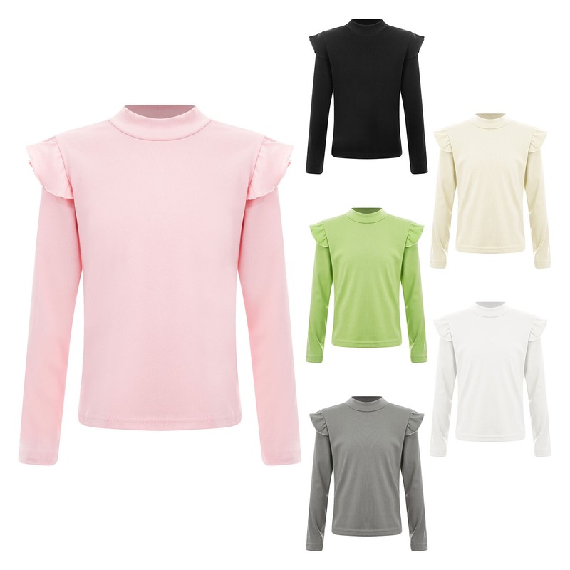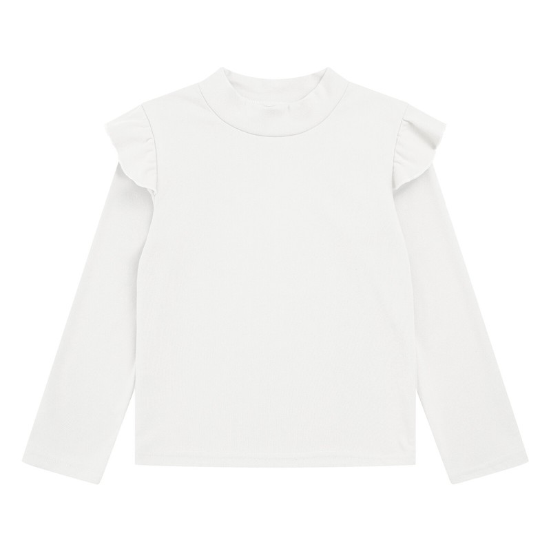 Mock neck long sleeve T-shirt thermal underwear top with ruffles on the shoulders, make your girl look cute and lovely.