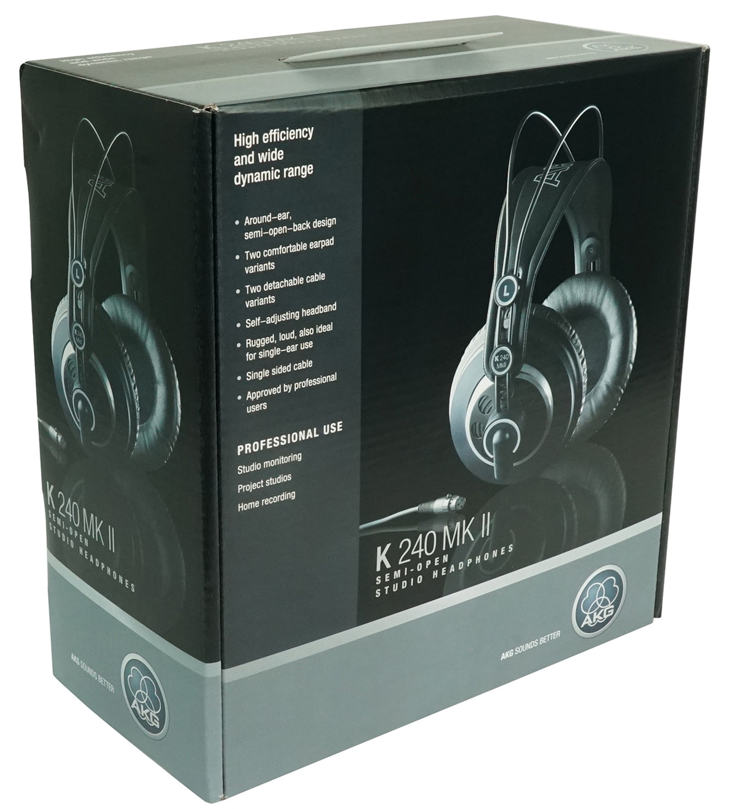 The AKG K240 MKII professional over-ear, semi-open headphones carry on the success of their predecessor—the AKG K240 Studio—and are a standard in studios, orchestras and on stages around the world. Their advanced 30 mm XXL transducers with patented Varimotion diaphragms deliver a wide dynamic range, increased sensitivity and high sound levels, while their semi-open design provides the airiness of open headphones with the powerful bass response of closed designs.