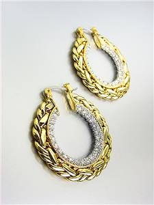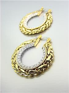 EXQUISITE Designer 18kt Antique Gold Plated Cable CZ Crystals Hoop Earrings