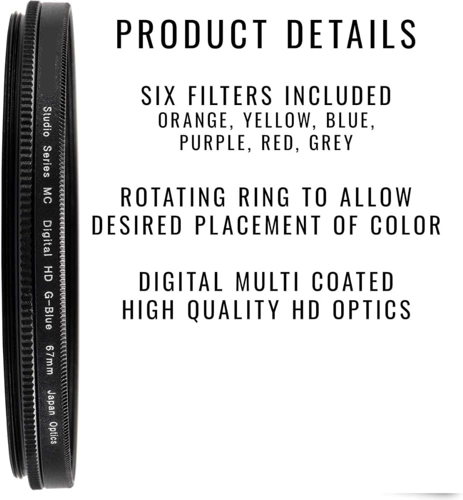 Elevate your photography with the Acuvar Professional 6-Piece Graduated Color Filter Kit, designed to add stunning tones, mood, and balance to your photos without digital editing. Each filter is crafted with precision for a smooth color transition, helping you take breathtaking landscape, sky, portrait, and creative effect shots right in-camera.