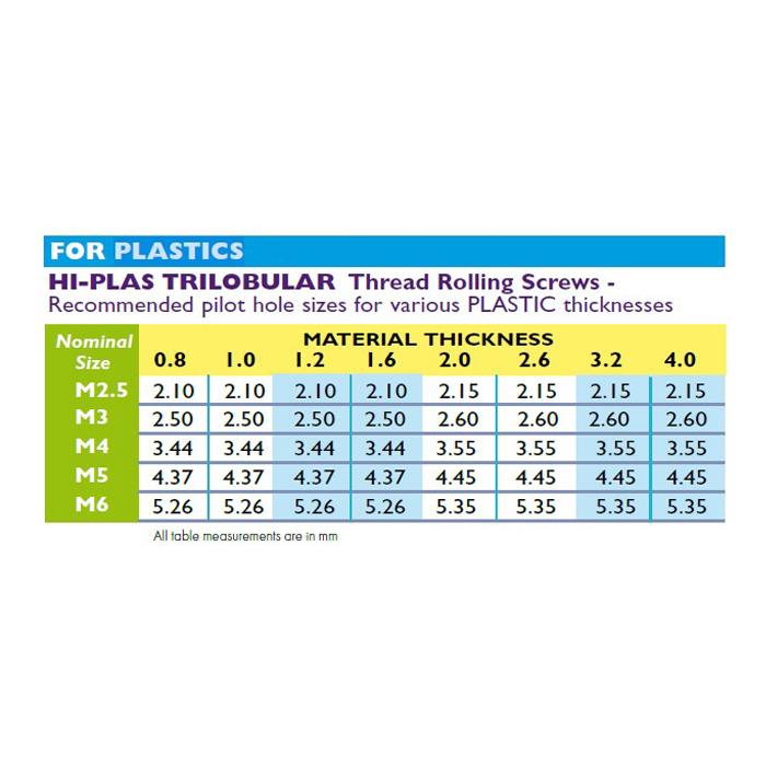 - Pan Pozi Drive Hi-Plas Thread forming Screws feature a specialised thread forming trilobular thread, which is designed to tap its own thread into a plastic housing with pre-drilled pilot holes. They combine a unique TRILOBULAR® cross-sectional form with deep, wide, spaced threads.