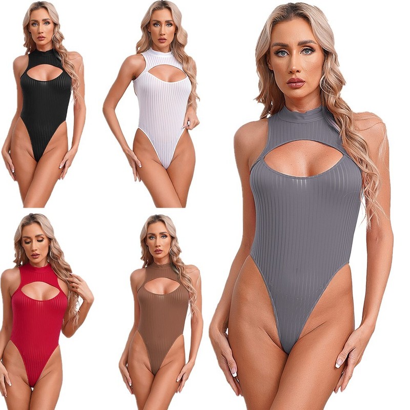 Halter neck, lace-up at back, sleeveless and backless bodysuit, a good gift for yourself or your lover.