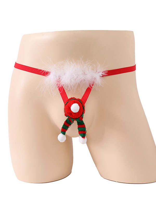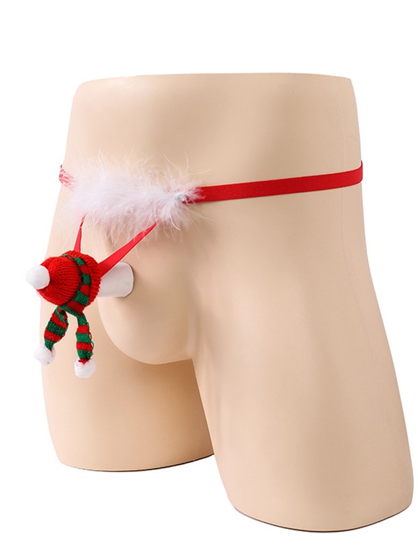 Men’s Christmas low rise feather trim thong is a good choice to spice up your night life and try a new different pleasure experience.