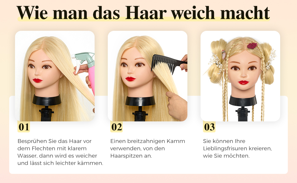 【Professioneller Gebrauch】Geeignet für Kosmetologiestudenten, Friseure, Hairstylisten oder jeden anderen, um Schneiden, Stylen, Flechten, Setzen zu üben.
