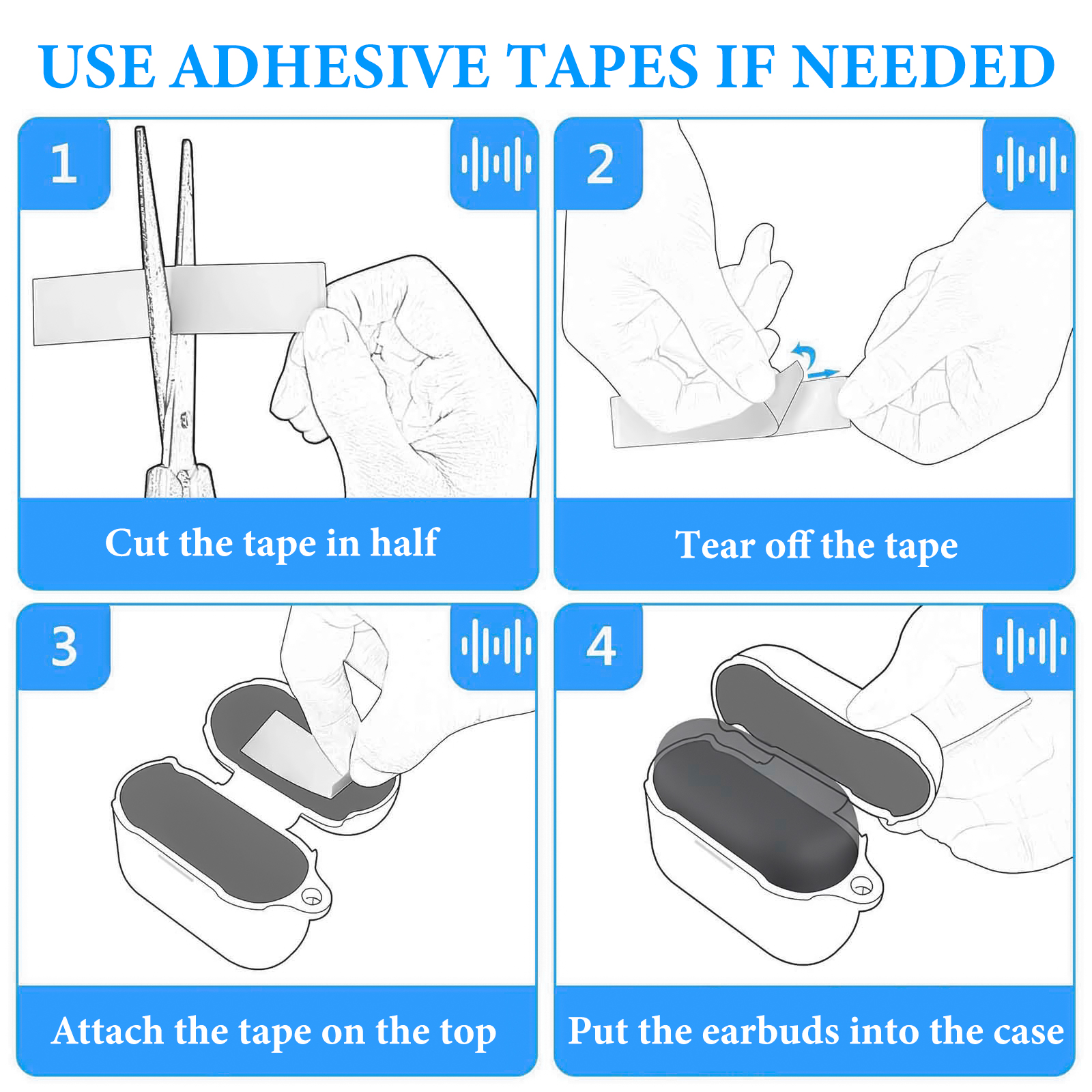 - Adhesive strips inside for a more secure fit. Portable with keychain hook. Special cutout for charging your earbuds without removing the cover.