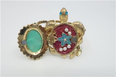 Large turtle with shell that opens to reveal a starfish & pearls