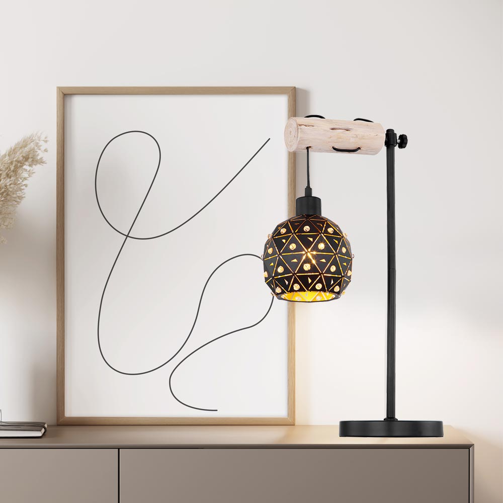 Der schwarz matte Schirm ist mit vielen wunderschönen K9 Kristallen besetzt, die Ihren vier Wänden ein ganz besonderes Flair verleihen. Die Höhe der Tischleuchte beträgt 55 cm und passt perfekt ins Wohn - oder Schlafzimmer.