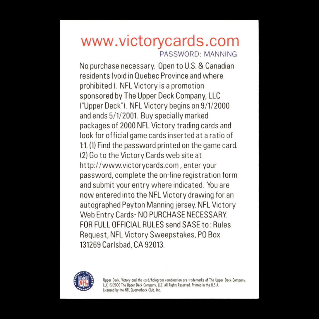 | Peyton Manning 2000 Upper Deck Indianapolis Colts #NNO R327L 32 |