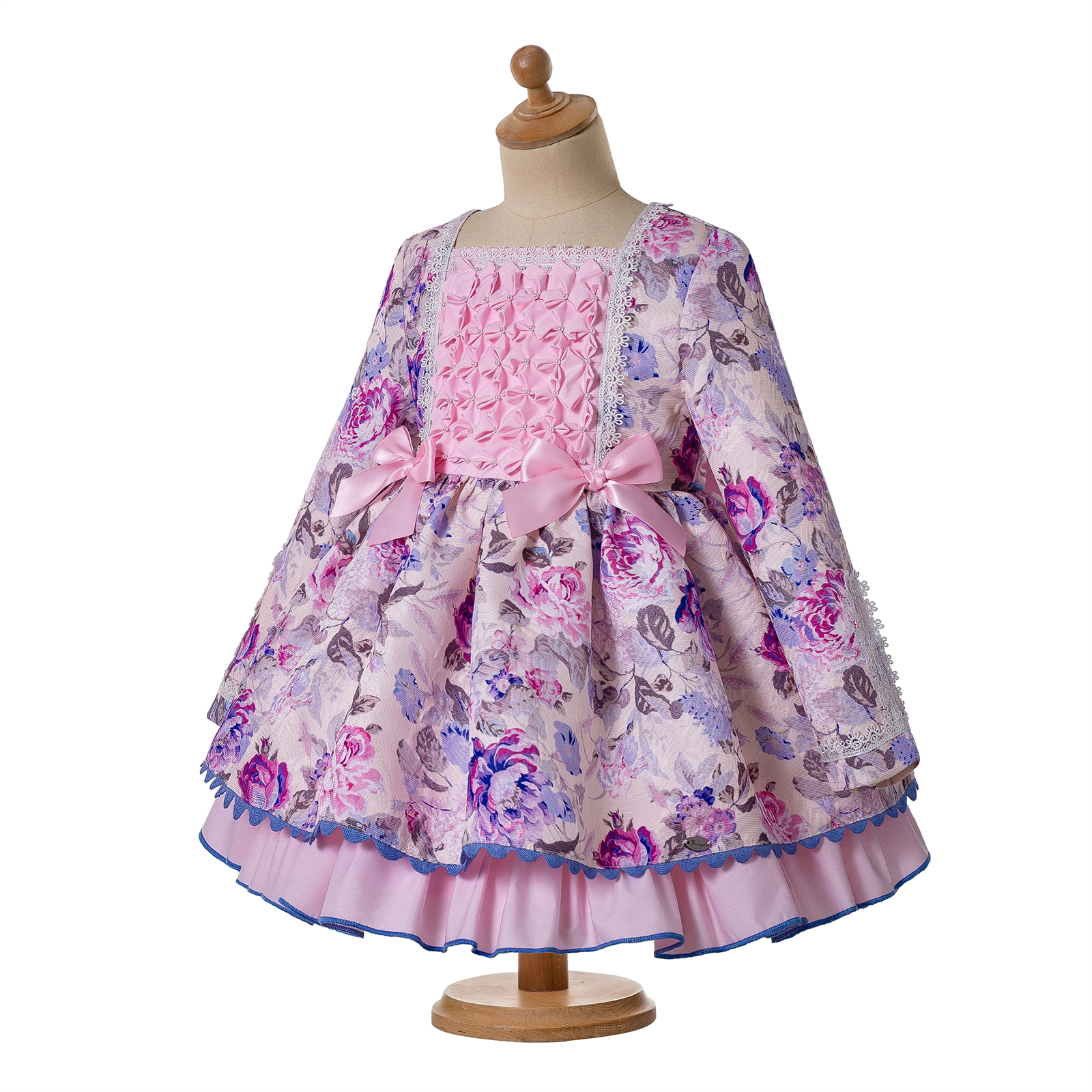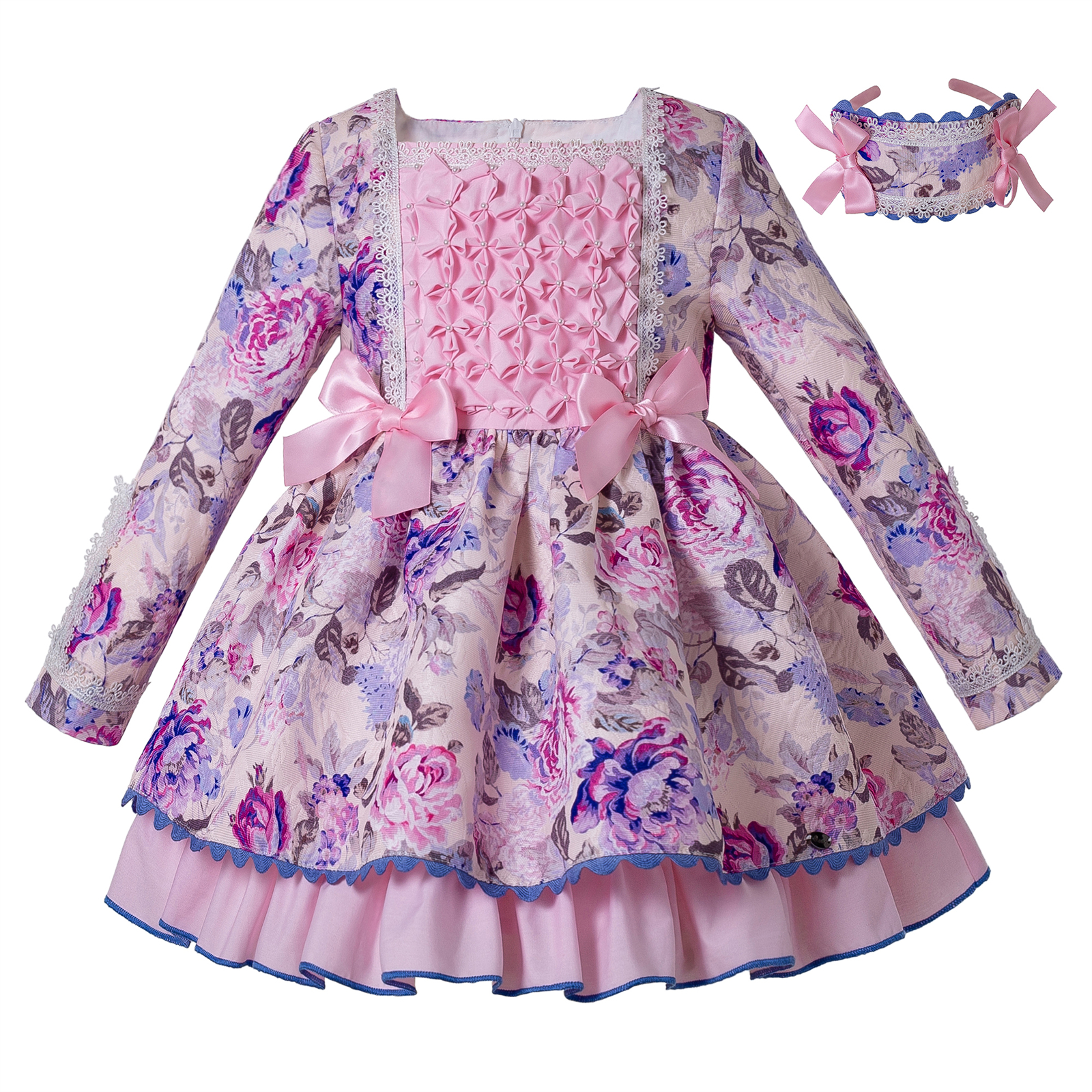 Toddler Girls Long Sleeves Floral Smocked Dress Age 2 3 4 5 6 8 10 12 + Headband