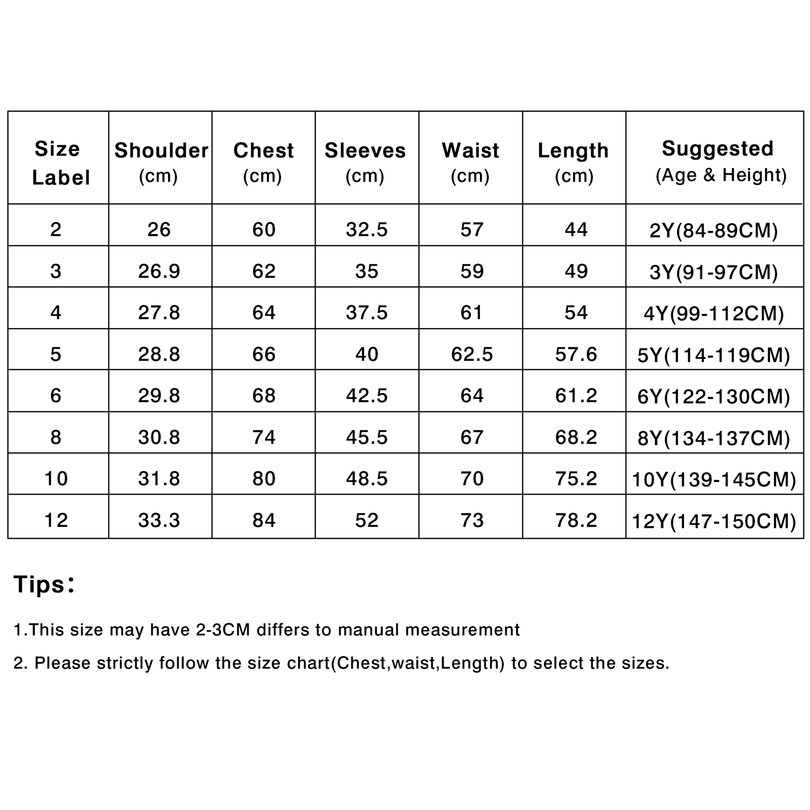 Size: Tag 2Y 3Y / 4Y / 5Y/ 6Y/ 8Y / 10Y / 12Y