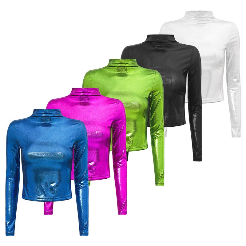 This metallic shiny top is perfect for pairing with jeans, wide-leg trousers, leather pants, skirt, leggings or hot pants.