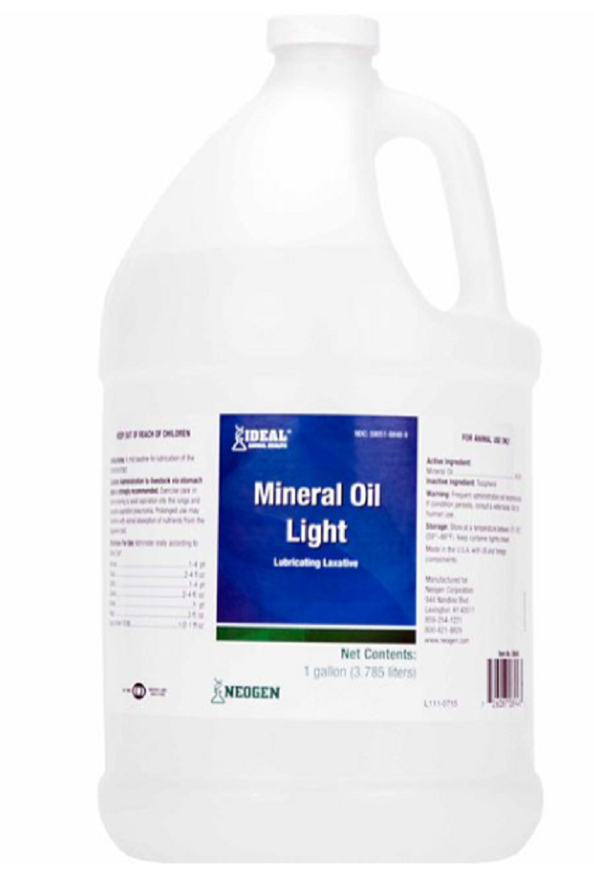 Use Ideal Animal Health Light Mineral Oil as a mild laxative for lubrication of the intestinal tract. It is recommended to administer these horse supplements to livestock via stomach tube. Store the container of equine supplements at room temperature and keep the container tightly closed. Use this oil with horses of all life stages. It contains 99.9% mineral oil for powerful use.