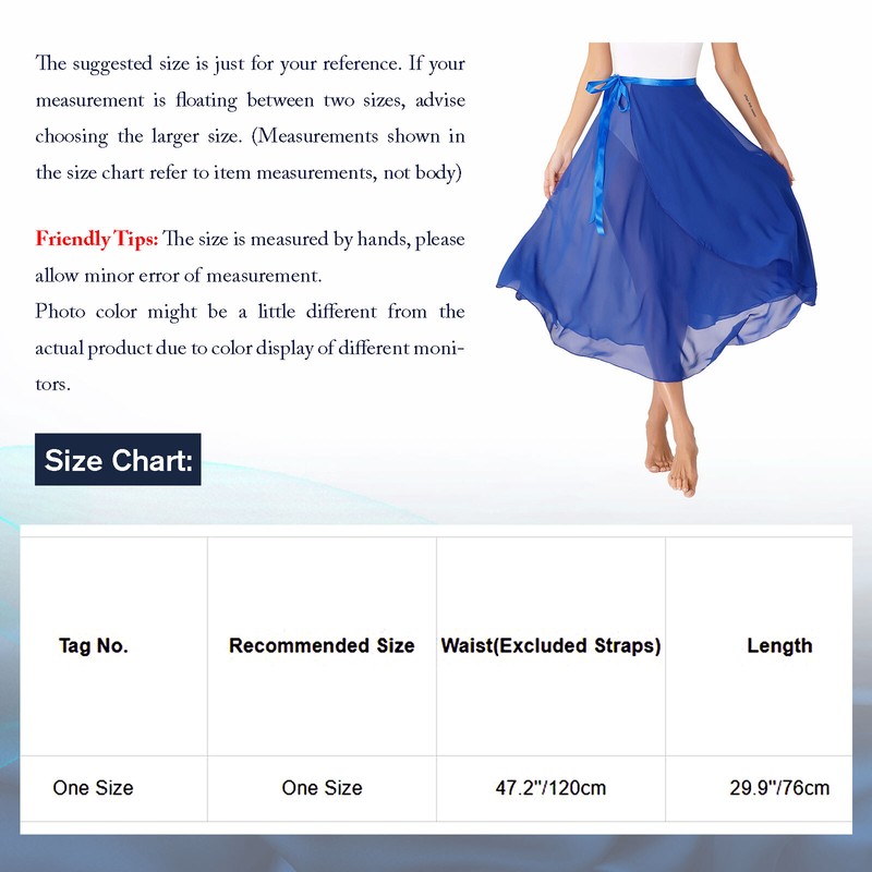 Women and girls chiffon ballet wrap skirt, free size fits most.