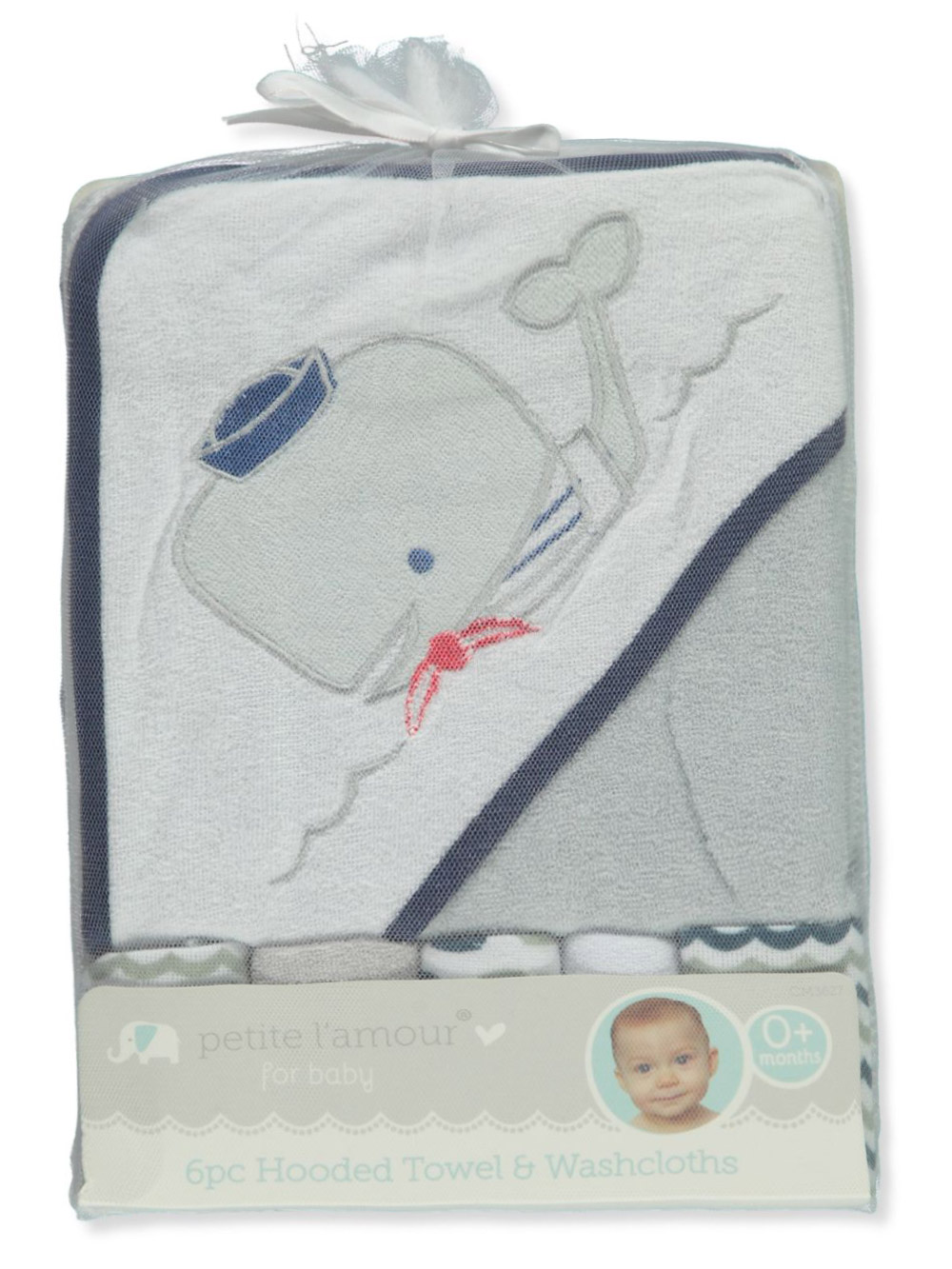 Cribmates Baby Boys' 6-Piece Washcloth & Hooded Towel Set - white/gray, one size