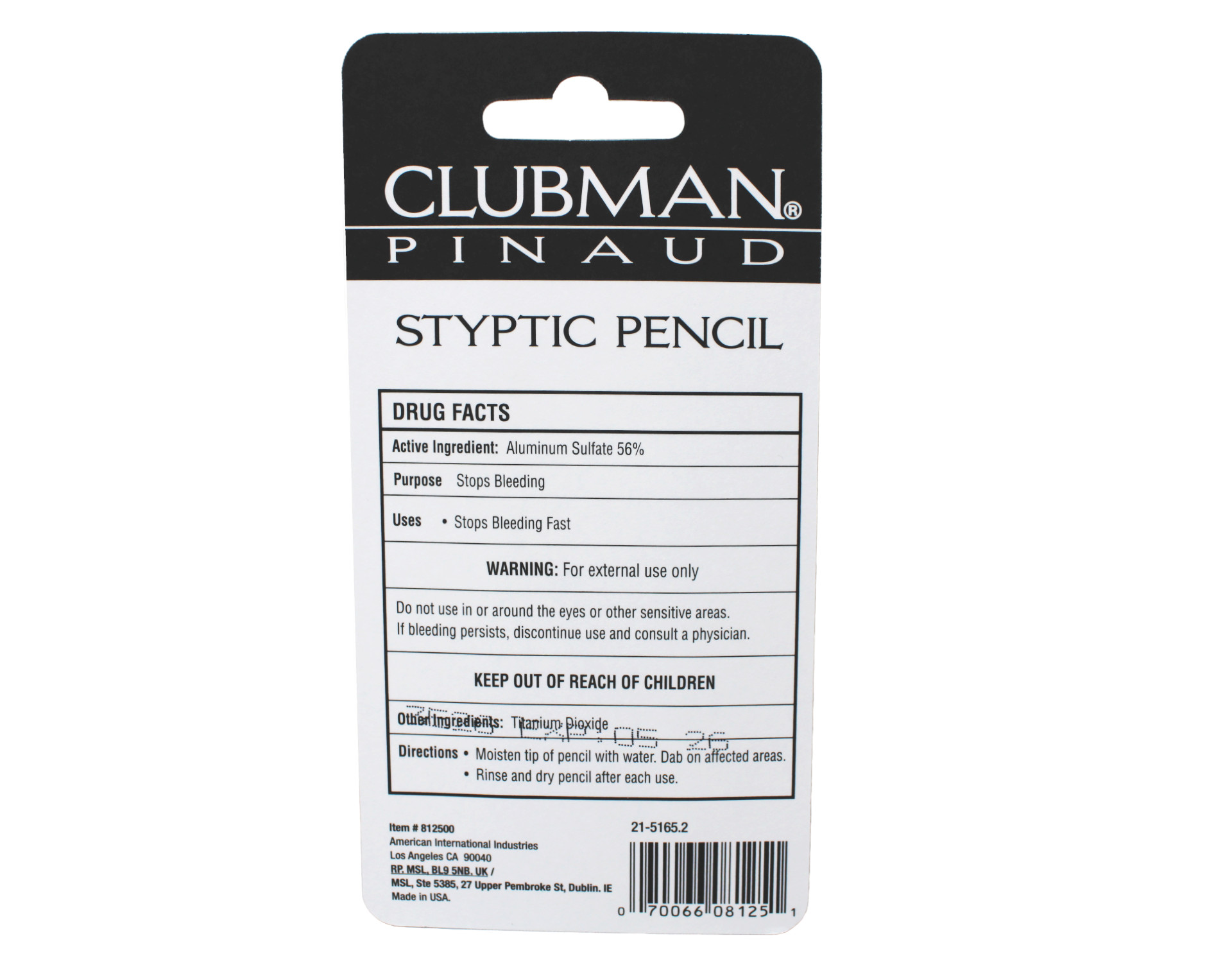 Keep cuts and nicks under control with our Clubman Styptic Pencil. Its fast-acting formula effectively seals your skin’s surface to stop bleeding and prevent infection. Leaves no trace, residue, or discoloration so you can get that perfectly smooth and close shave! A great addition to any serious MEN’S GROOMING KIT. Get yours today and feel the Clubman difference! Quick Fix for Shaving Nicks: Don’t let cuts ruin your style - grab a Clubman Pinaud Styptic Pencil and keep them in line! Look sharp with your closest shave yet without having to worry about post-shave nick bleeding. Stay confident and worry-free wherever you go! Get-It-Done Formula: Seals and heals skin instantly! Our Clubman Jumbo Styptic Pencil packs a punch when it comes to stopping bleeding after a close shave. Features a straightforward formula containing 56% Aluminum Sulfate and Titanium Oxide. No nonsense, just a styptic solution that works! Just rub and apply directly on your cuts before you splash on your Clubman Aftershave. More is More: Big man! Never run out of shaving nick relief with the Clubman Jumbo Styptic Pencil. Each pencil holds a full-ounce of effective styptic formula. Great for your everyday grind or even for professionals. You got it all! Portable Styptic Stick: Whether you’re at home or on the go, the Jumbo Styptic Pencil just makes life easier.This fast-acting styptic pencil fits your gym bag, briefcase, and your pocket effortlessly. Get the perfect shave no matter where you are!