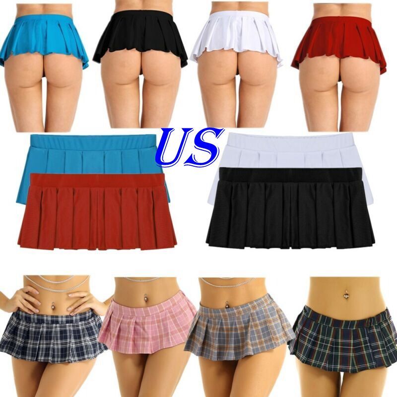 Women ladies Japanese schoolgirl cosplay mini plaid pleated skirt, simple but eye-catching piece.