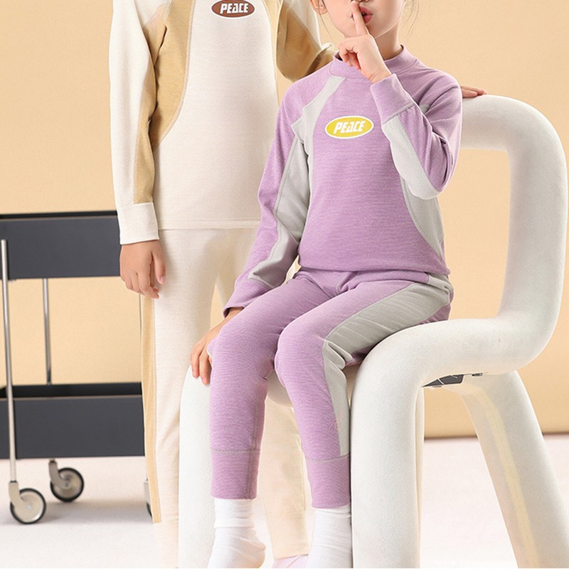 Matching elastic waistband pants with colorblock style.
